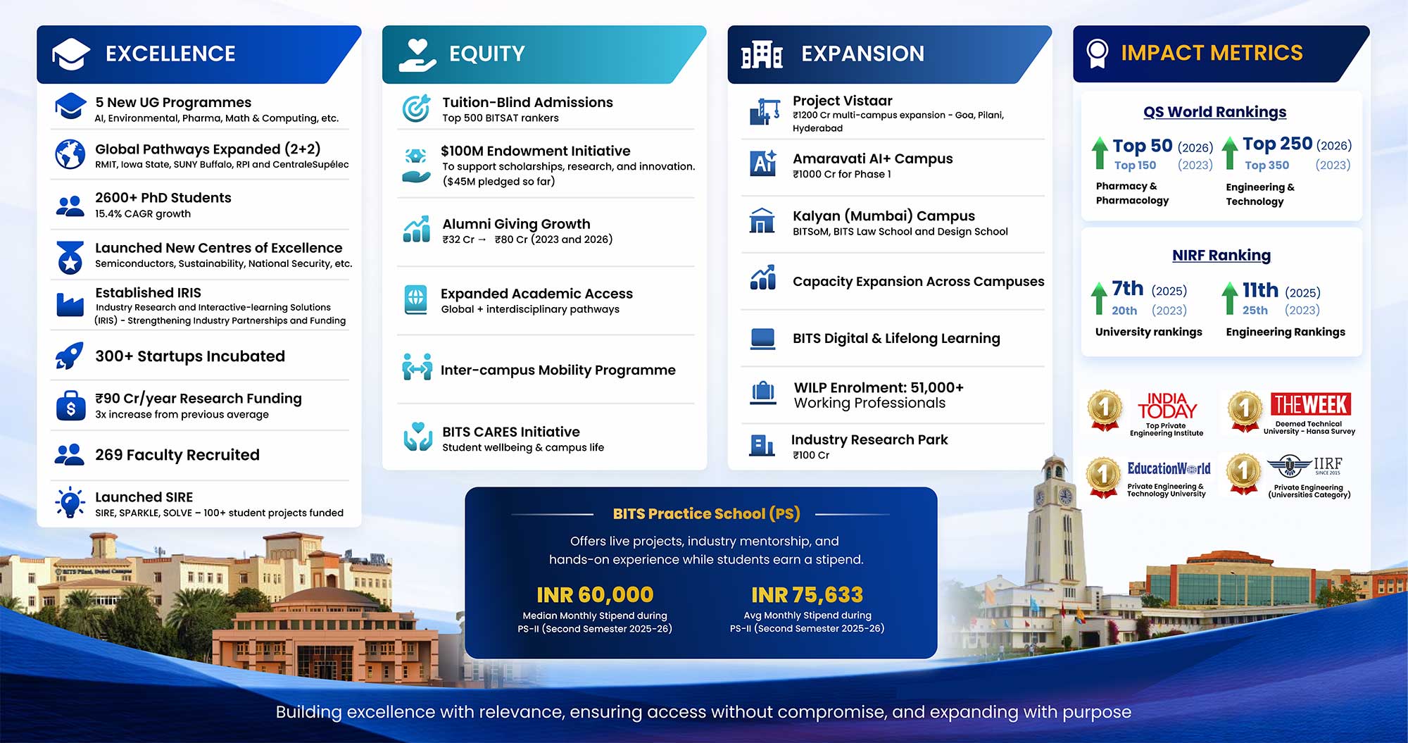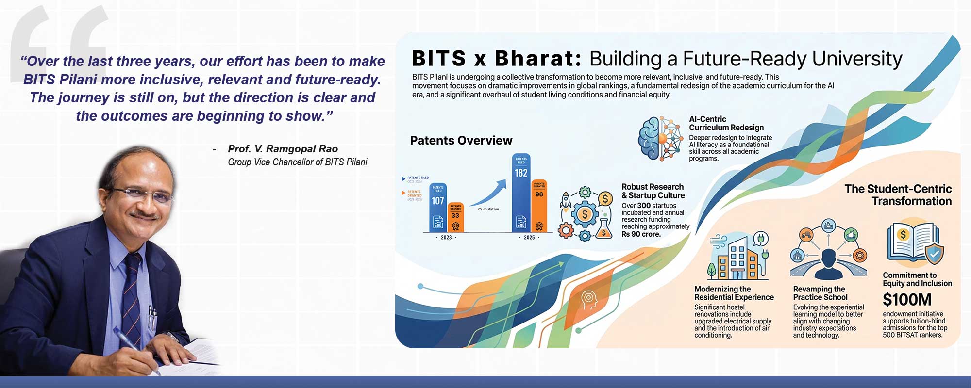 BITS x Bharat - A vision rooted in purpose, progress, and national impact. Discover how BITS Pilani is shaping its future through transformation, inclusion, and relevance.