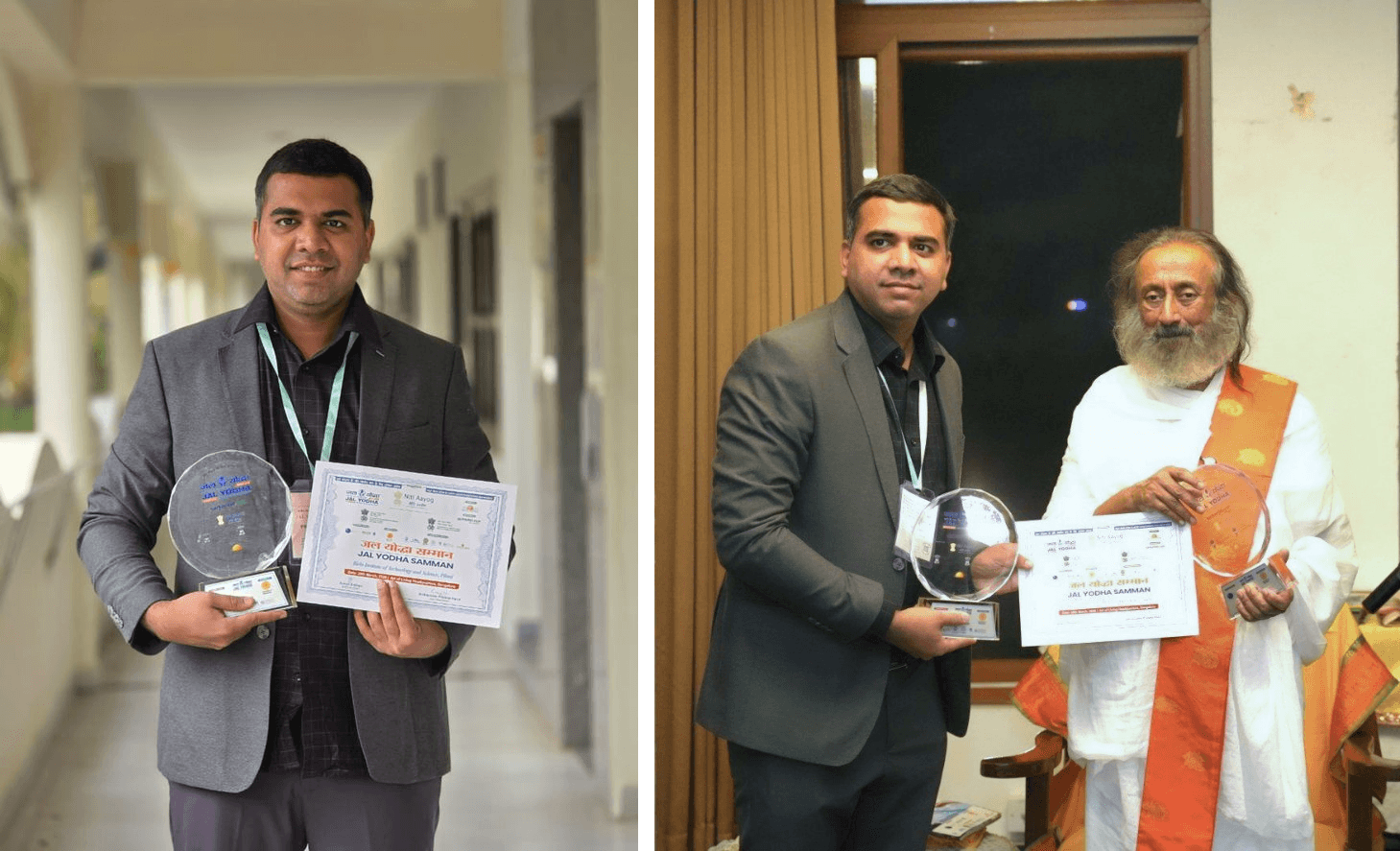 BITS Pilani has been conferred the Jal Yodha Samman 2025-26, recognising institutions advancing India's water security and the vision of Atmanirbhar Jal Bharat. Felicitated by Gurudev Sri Sri Ravi Shankar Ji, Prof. Srinivas Rallapalli, Department of Civil Engineering, received the award on behalf of BITS Pilani on 28 March 2026, organised by Sarkaritel.com, hosted by The Art of Living, Bengaluru, and supported by the Ministry of Jal Shakti and partner institutions. The organisers had invited both Prof. N.V. Muralidhar Rao, Dean Administration, and Prof. Rallapalli, whose combined vision built the Pilani campus into a model of water self-reliance, from rainwater harvesting to near-zero liquid discharge, in the heart of semi-arid Rajasthan.