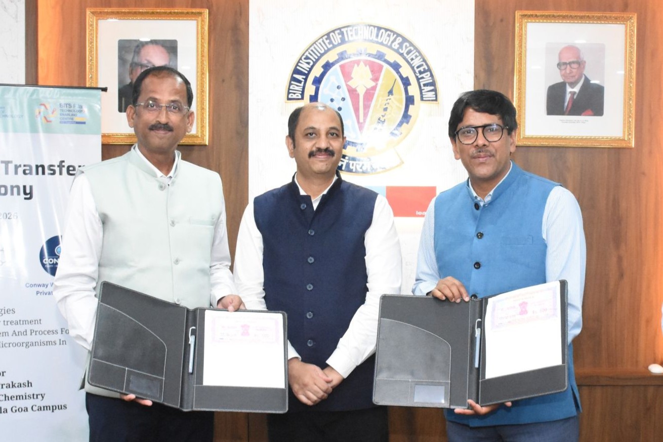 BITS Pilani K K Birla Goa campus, through its Technology Transfer Office, has facilitated the transfer of two advanced water treatment technologies developed by Prof. Halan Prakash (Department of Chemistry) and his team to Conway Water Purifier Pvt. Ltd.