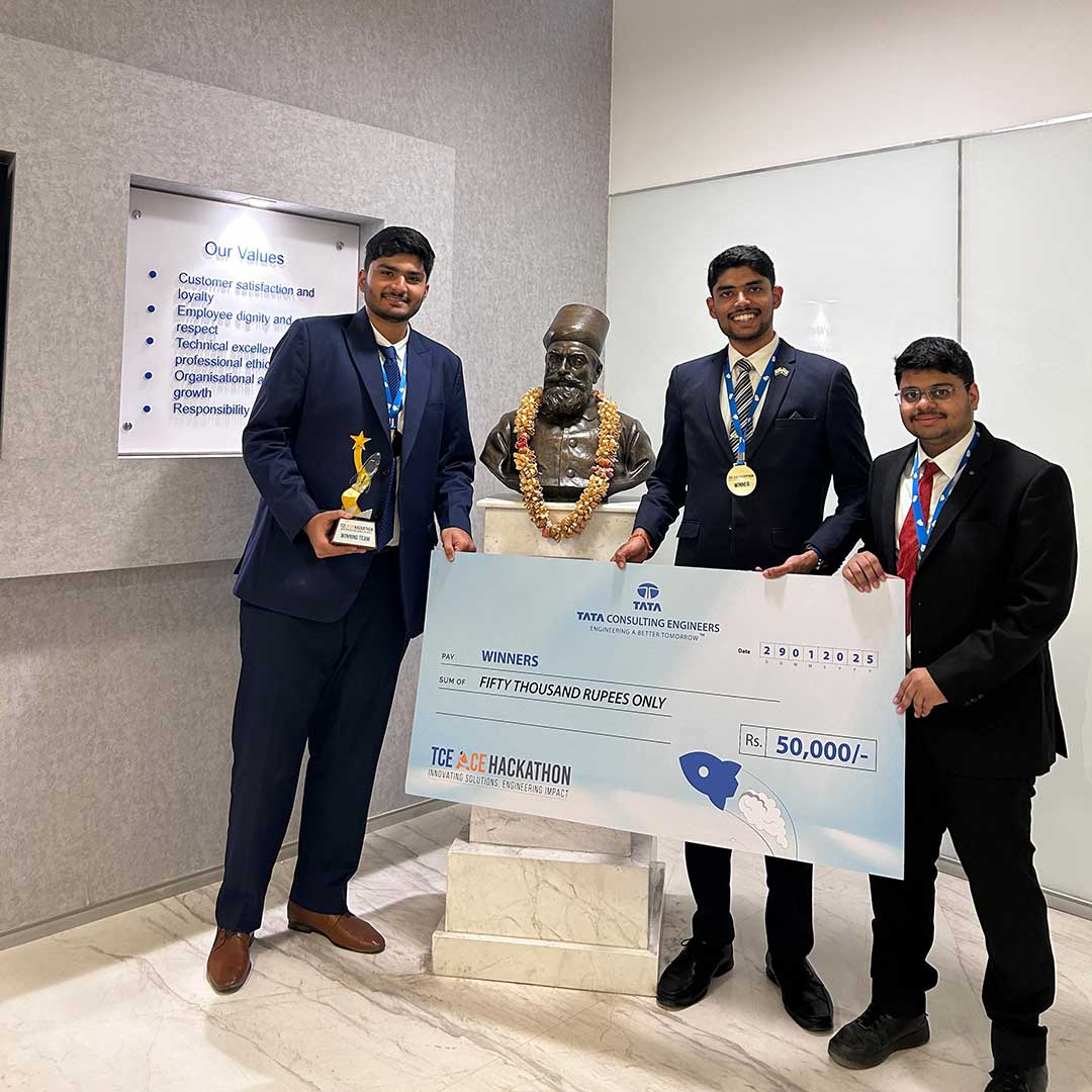Three Mechanical Engineering students from BITS Pilani Parth Pravin Hande, Aditya Dar, and Mohd Abdullah Wasif bagged the first position among the entries at TATA Consulting Engineers (TCE) ACE Hackathon for their project 'BITSolution,' against premier institutes including IITs and NITs. It was a high-profile event held in Mumbai, where the teams were developing proposals for the accelerated establishment of EV charging infrastructure in India. These students manifest a magnificent approach to this complex problem with the integration of engineering knowledge in a supporting business model enriched with AI optimization—the assurance of technical feasibility and economic viability.
