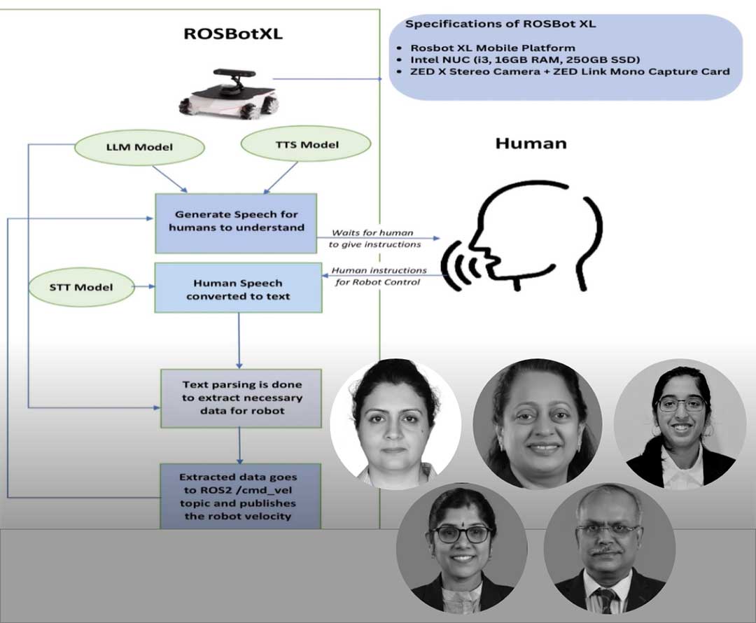 A team from BITS Pilani, Dubai Campus Dr. Sheeba Uruj, Ms. Riddhi Goswami, Prof. Sujala D. Shetty, Prof. Kalaichelvi Venkatesan, and Prof. Karthikeyan Ramanujam has developed an advanced framework combining GPT-4, LLaMA 3.2, and speech processing models to make robots understand and respond to human speech more naturally. By testing eight model combinations, the researchers found that GPT-4 with Whisper API and gTTS delivered the best accuracy and speed for real-time voice-based robot control.