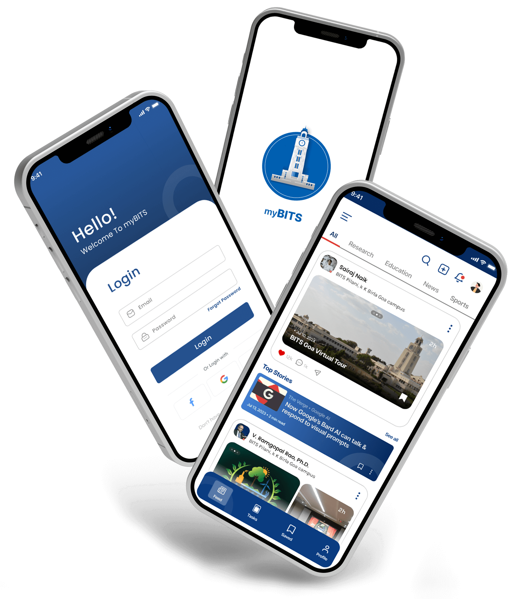 Say hello to a smarter campus experience. myBITS is being designed to bring everything you need into one place – uploading & downloading notes for students and faculty, ERP access, timetables, lecture recordings, live sessions, role-based logins, custom dashboards, hostel allotment, mess change requests, SOS/emergency support, institute-wide calendar, important updates, alumni networking & mentorship, placement and internship updates, and even a dedicated feed where every BITSian can post, share, and stay connected.