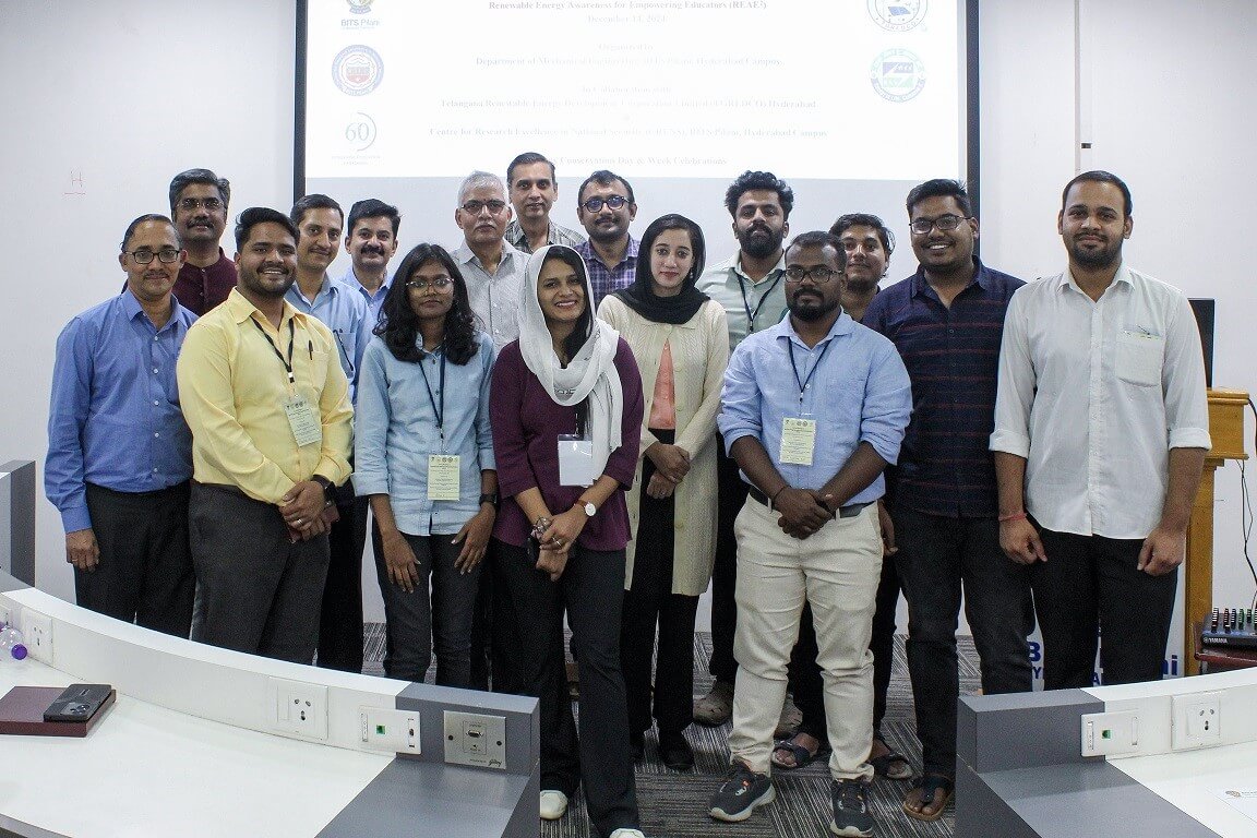 The Department of Mechanical Engineering, in collaboration with the Telangana Renewable Energy Development Corporation Limited (TGREDCO), Hyderabad and the Center for Research Excellence in National Security (CRENS), organized a One-Day Workshop on Renewable Energy Awareness for Empowering Educators (REAE2) on December 14, 2024 at BPHC.