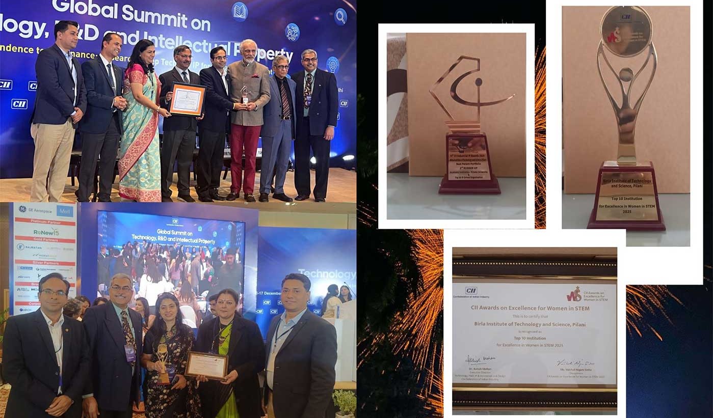 Birla Institute of Technology and Science, Pilani received two national recognitions at the CII Global Innovation & IP Summit 2025, New Delhi. The Institute won the “Best Patent Portfolio (2020–2025) – Second Runner-Up” award in the Academic Institutions – Private Universities category, placing it among the Top 30 IP-driven organisations in India. The award was received on behalf of BITSPilani by Prof. Sudhirkumar V Barai, Director BITS Pilani, Pilani campus, along with Prof. Deepak Chitkara, Prof. Swati Alok, and Mr. Rajneesh Kumar.