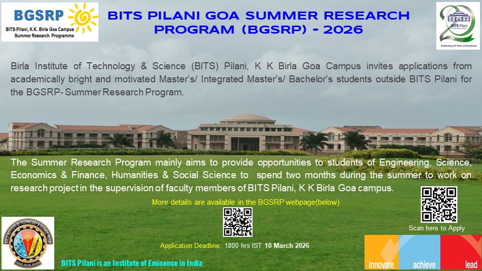 Goa is a well-known and popular hotspot on the tourist map of India and the world. The name immediately brings to one’s mind the lush green meadows, hills and valleys, the sea and its attractive beaches. This charm and beauty sets the right ambience for BITS, Pilani K K Birla Goa Campus, an Institute of excellence in Technology and Sciences.