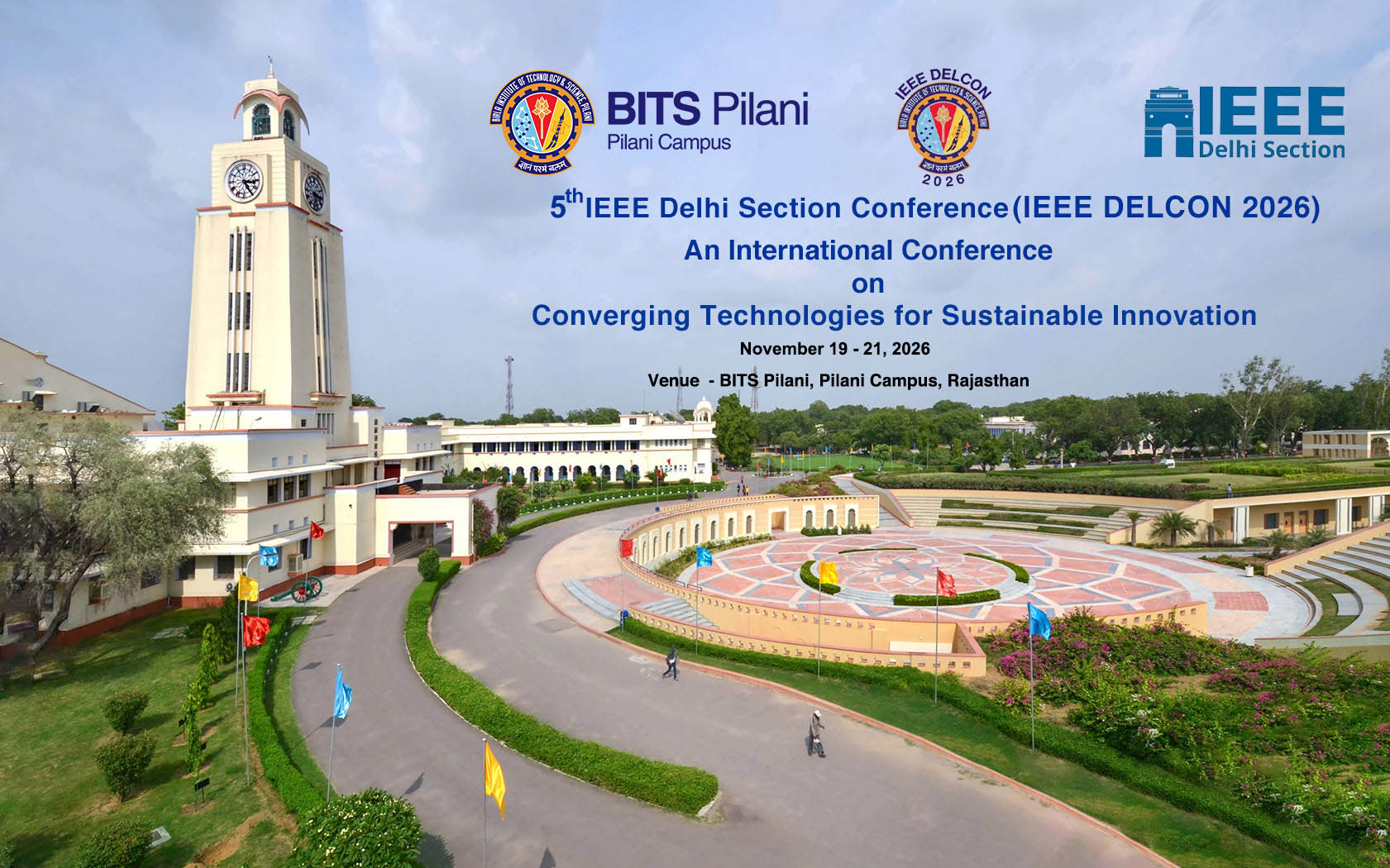 The fifth edition of IEEE DELCON 2026 (19–21 November 2026) will be hosted by the Birla Institute of Technology and Science, Pilani (BITS Pilani), Pilani Campus, Rajasthan, India, with the theme “Converging Technologies for Sustainable Innovation.” Organized in association with the IEEE Delhi Section, DELCON 2026 brings together diverse communities to explore interdisciplinary technologies and solutions for sustainable and impactful innovation across multiple technical tracks.