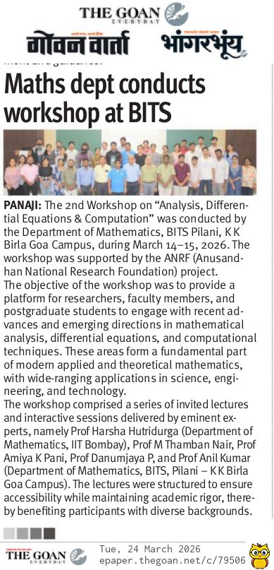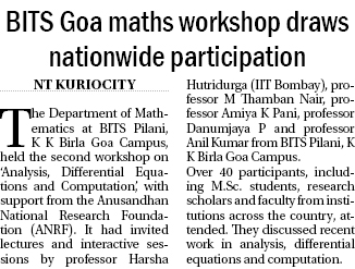 BITS Goa maths workshop draws nationwide participation - The Navhind Times 27.03.2026