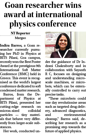Goan researcher wins award at international physics conference - The Navhind Times 15.10.2025