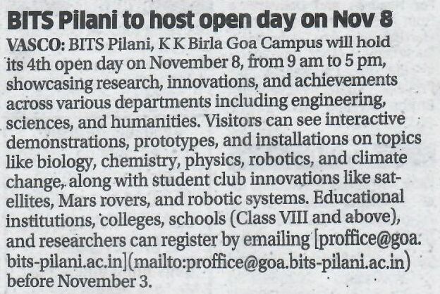 BITS Pilani to host open day on Nov 8 - The Navhind Times 29.10.2025