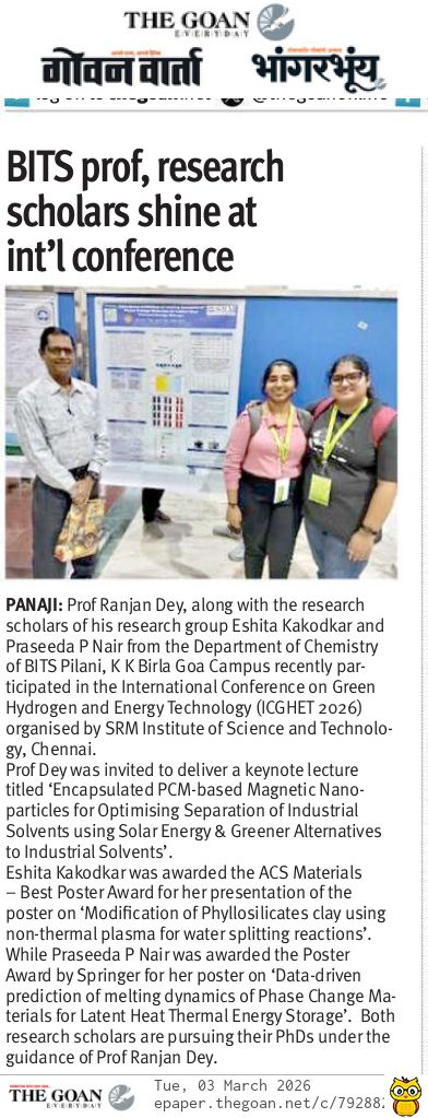 BITS prof, research scholars shine at int’l conference – The Goan 03.03.2026