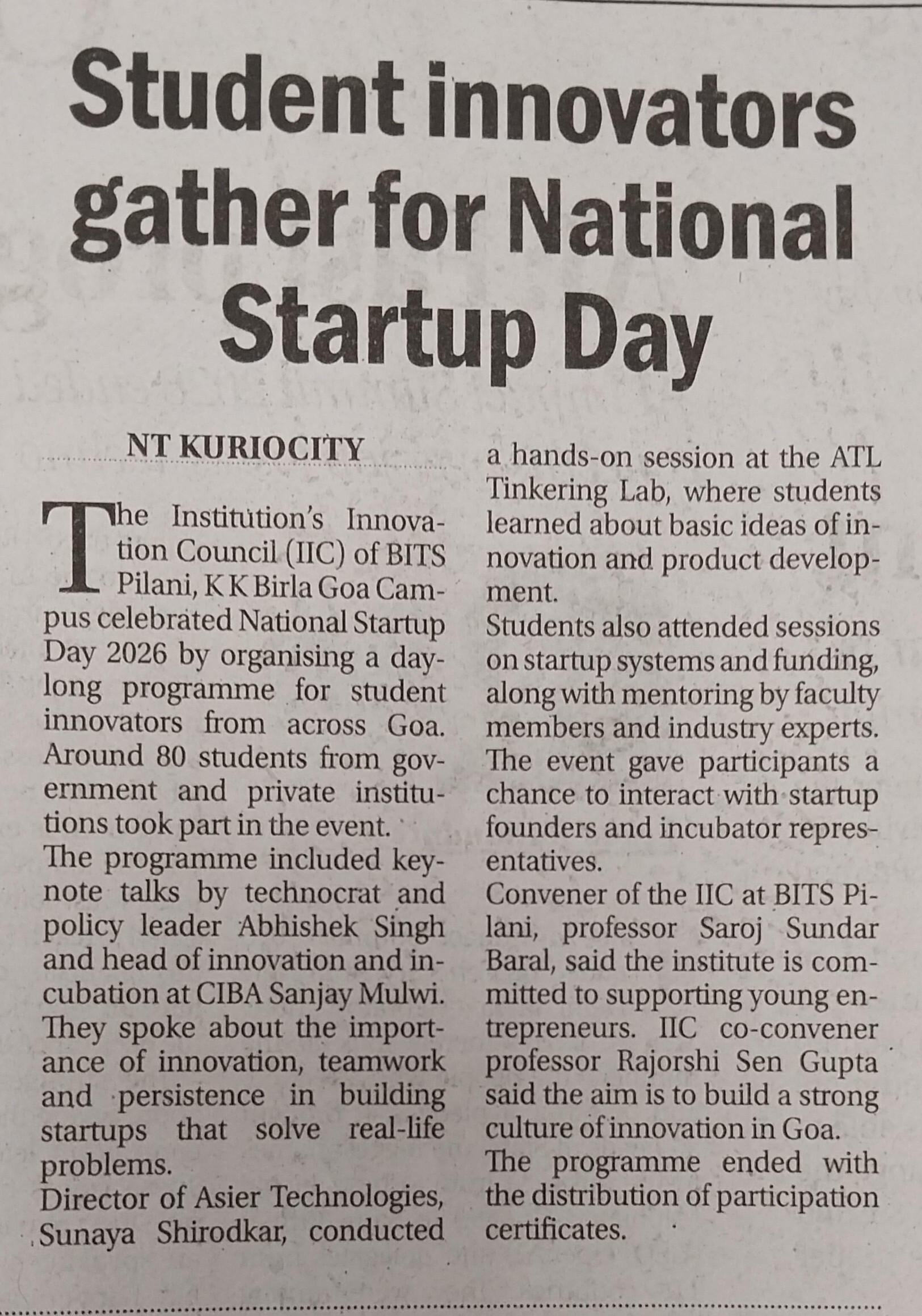 Student Innovators Gather at BITS Pilani, Goa for National Startup Day 2026 - The Navhind Times 27.02.2026