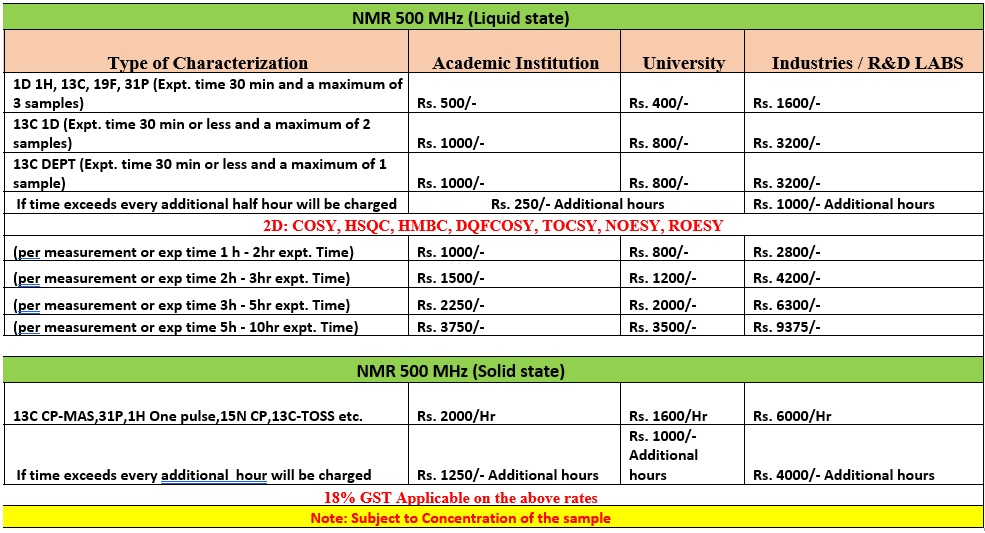 - Additional charges wherever appropriate may be levied for any special analysis request not included in the Charges list for respective equipment.