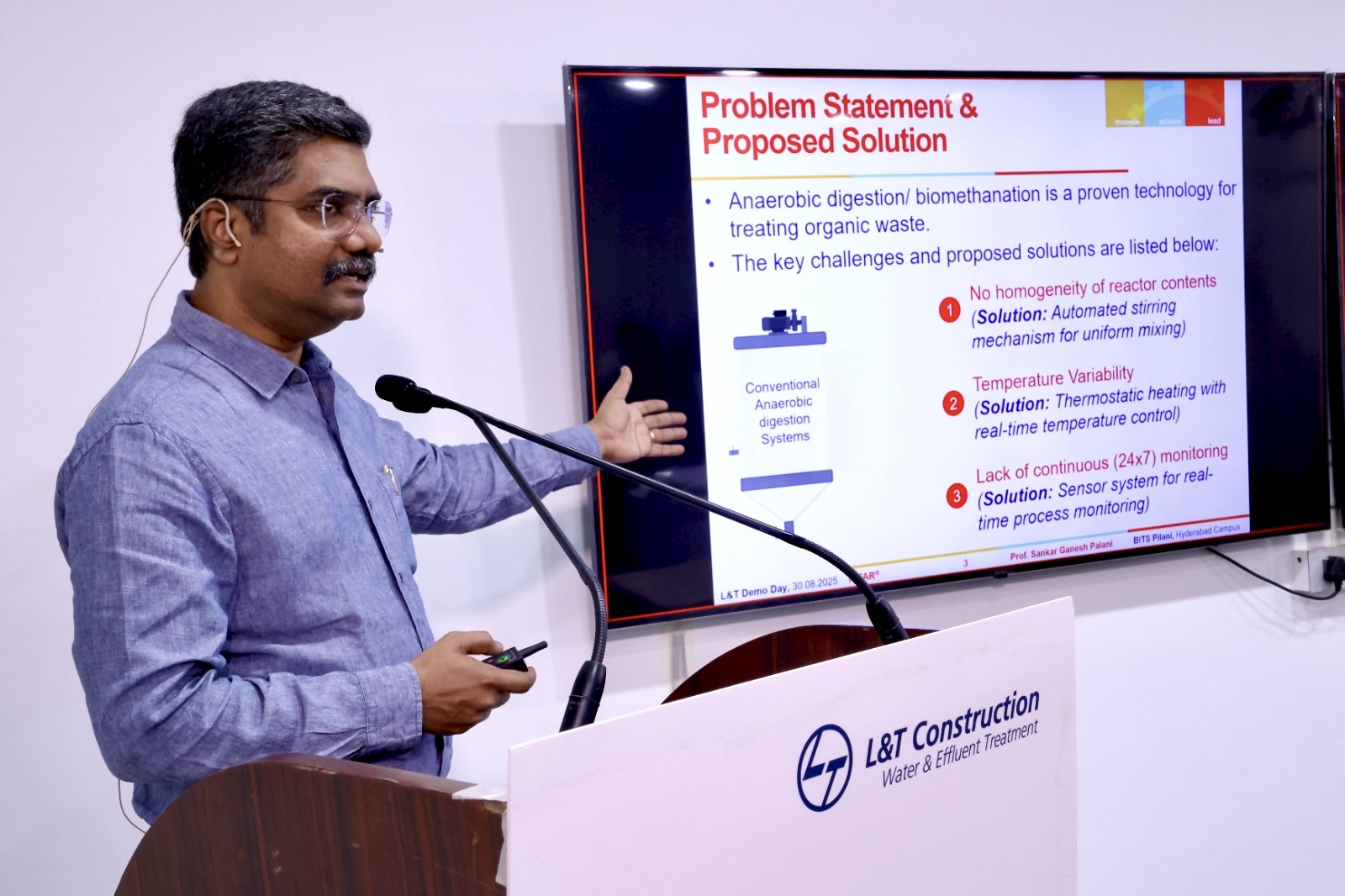 As part of DST-PURSE project, a 25m³ (25,000L) biomethanation digester was commissioned in 2023 at the sewage treatment plant in BITS Pilani, Hyderabad Campus to treat the food waste. The biogas produced is converted into electricity to supplement the energy requirements of the sewage treatment plant, while the spent slurry is utilized as a biofertilizer, promoting eco-friendly agricultural practices.