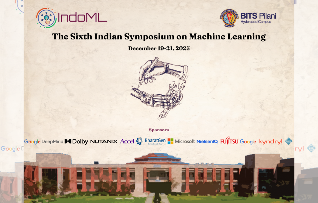 The Sixth Indian Symposium on Machine Learning (IndoML 2025) will convene from December 19 to 21, 2025, at the BITS Pilani, Hyderabad Campus. This landmark event represents a powerful consortium that bridges leading industry labs with elite academia. Co-organized by the Anuradha and Prashanth Palakurthi Centre for Artificial Intelligence Research (APPCAIR) and the CSIS Department of BITS Pilani Hyderabad, this premier event creates a unique platform for demonstrating global research breakthroughs in Artificial Intelligence (AI) and Machine Learning (ML).
